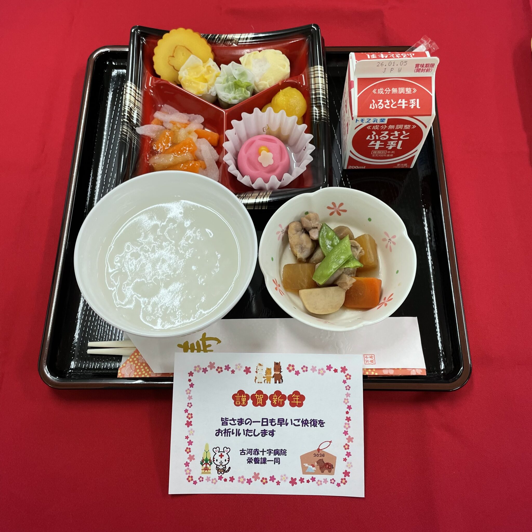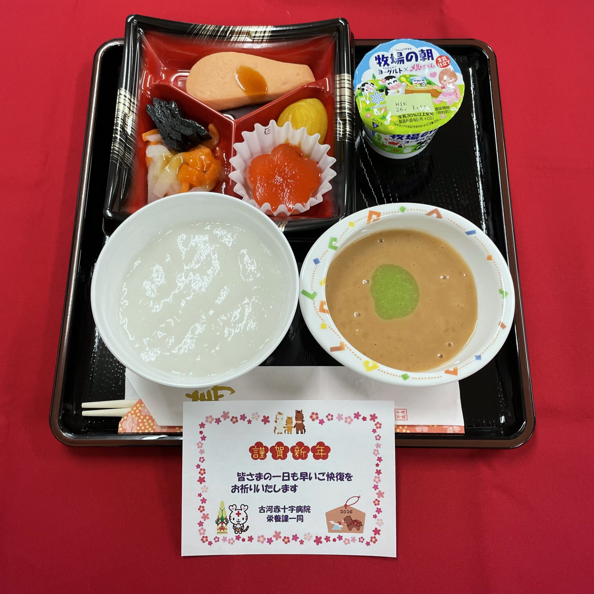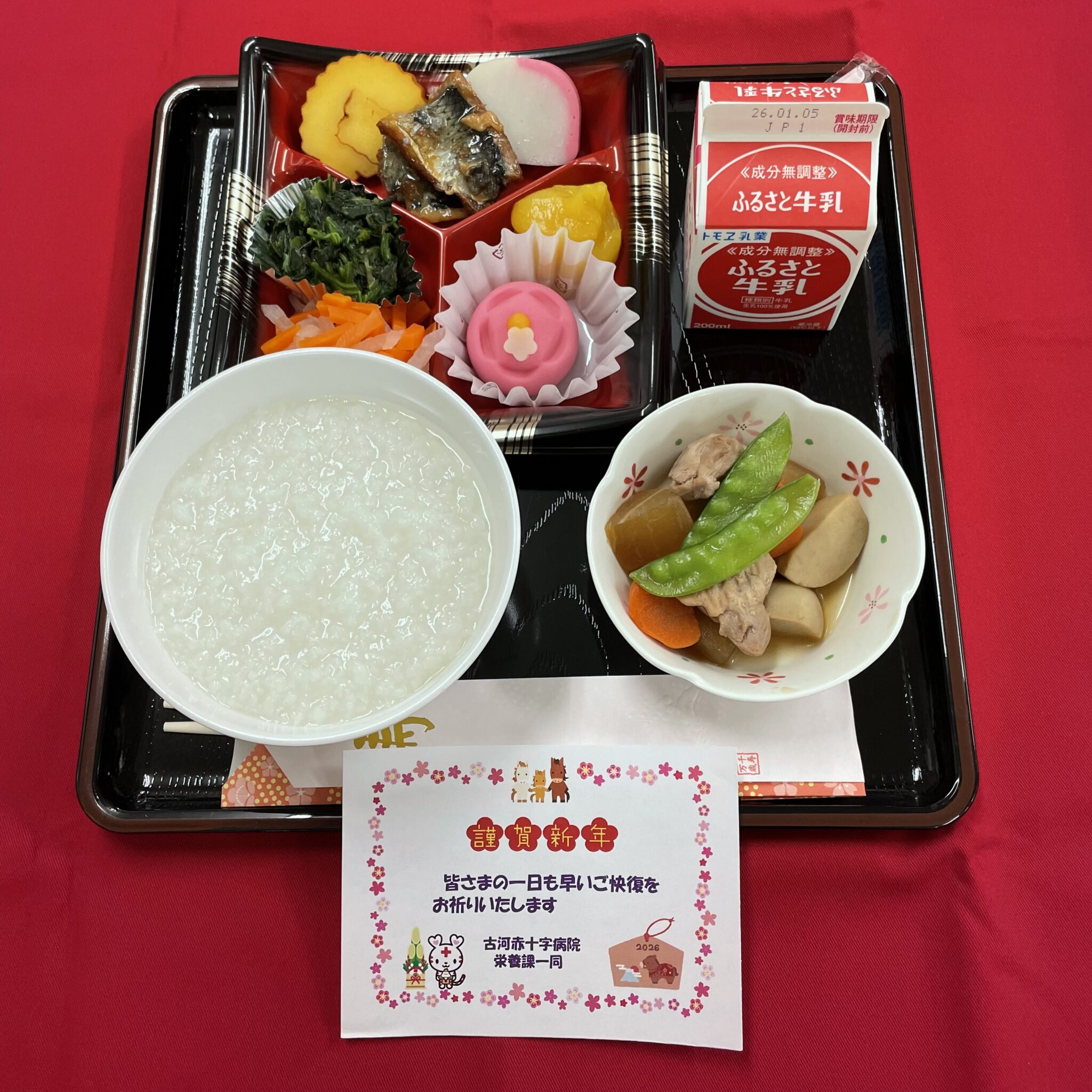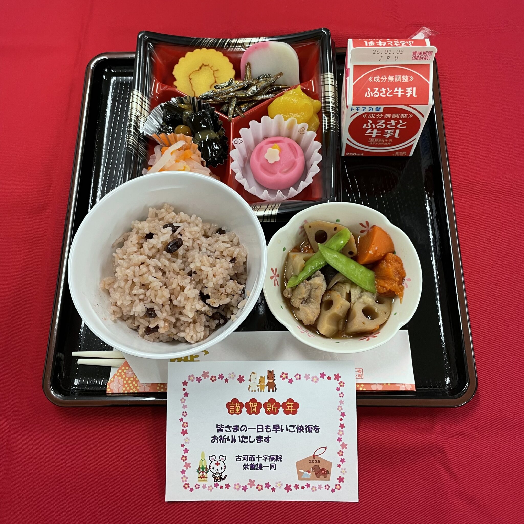 病院開院日、クリスマス、お正月、ひなまつりなどの行事食は、普段の献立とは異なる特別メニュー献立を提供させていただいております。